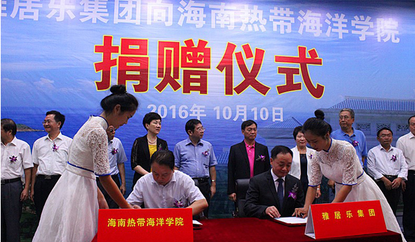 2016年10月10日上午,“雅居樂集團(tuán)向海南熱帶海洋學(xué)院捐贈(zèng)儀式”在熱帶海洋學(xué)院報(bào)告廳隆重舉行。